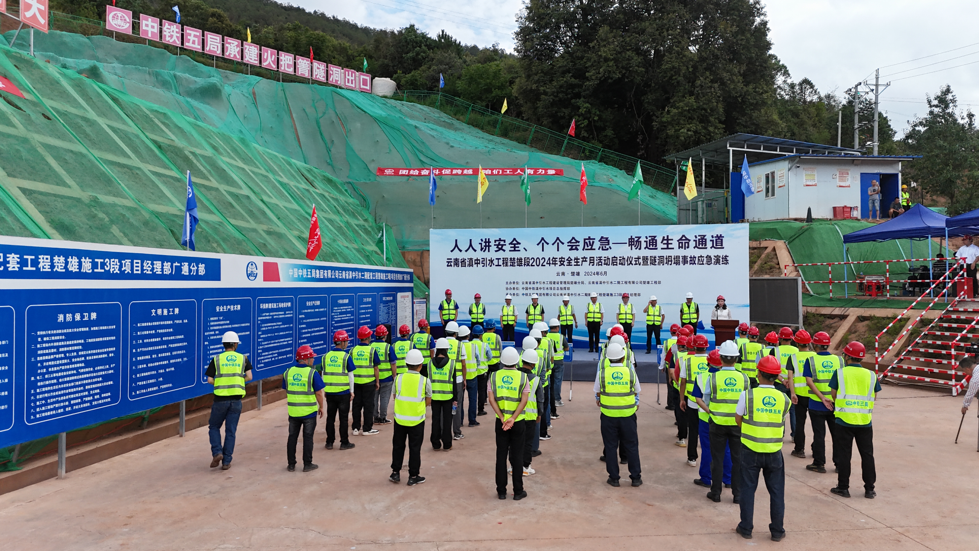 2024年“安全生产月”期间,北京海策云南省滇中引水工程监理部紧密聚焦“畅通生命通道”这一主要内容,大力推动安全生产宣传月工作,协同中铁五局滇中引水施工项目部利用横幅、海报、短视频等多元化形式和各类新媒体平台、户外大屏等多样化载体广泛宣传安全应急知识,组织开展模拟火灾、地震、隧洞等场景的应急疏散演练、线上避险逃生公开课、避险逃生知识竞答等活动,运用举报奖励机制,鼓励广大群众积极举报堵塞“生命通道”的安全隐患。通过宣传和演练,不断提升北京海策承监的云南滇中引水二期配套工程施工3标段的四个工区的风险防范、安全应急意识和自救互救能力,积极营造滇中引水二期配套工程安全生产的良好氛围。